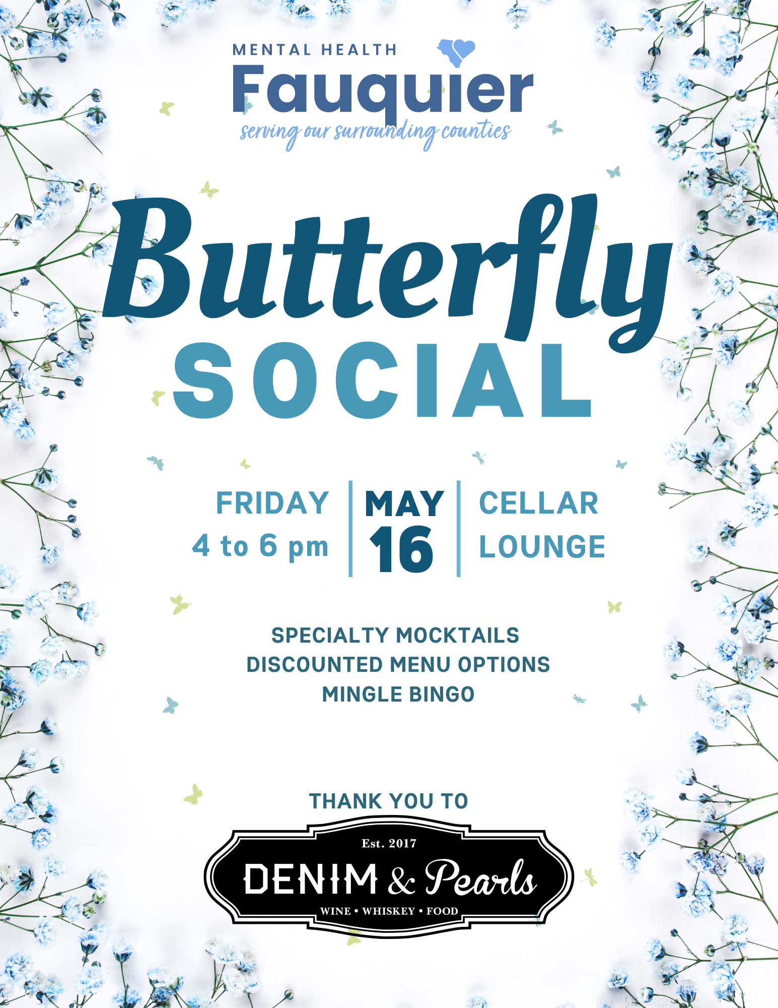 In partnership with numerous community organizations, we've developed a comprehensive calendar of awareness campaigns, educational workshops, and social gatherings. Look for our signature butterfly charm cards throughout Warrenton, Marshall, Remington, and Sperryville for details on local events.